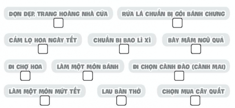 Em đã góp phần chuẩn bị đón Tết Nguyên đán bằng cách: