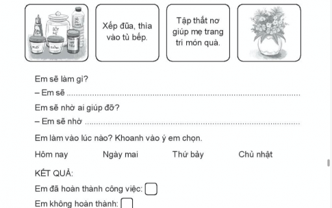 3. Chọn thêm một trong những việc nhà khác theo gợi ý sau đây và hỏi bố mẹ cách làm: