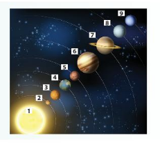 - Em hãy cho biết các thiên thể số 4,6,8 trong hình bên là những hành tinh nào trong hệ Mặt Trời