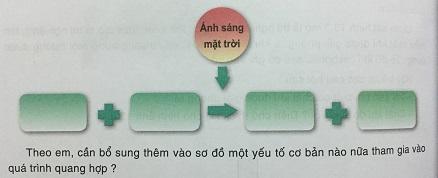 Theo em, cần bổ sung thêm vào sơ đồ một yếu tố cơ bản nào nữa tham gia vào quá trình quang hợp ?