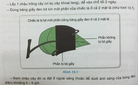 Trong thí nghiệm “Cây cần ánh sáng để làm gì?”, việc bịt lá thí nghiệm bằng băng giấy đen nhằm mục đích gì?