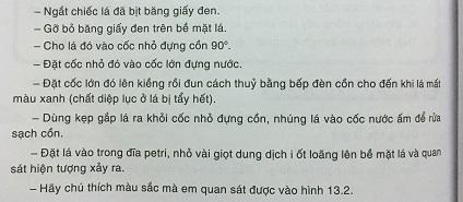 Quan sát hình 13.3 hoặc xem phim môt tả thí nghiệm trong điều kiện chiếu sáng và cung cấp đủ khí cacbonic.