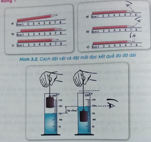 6. Trong hình 3.2 và hình 3.3 là cách đặt vật, đặt bình và đặt mắt khi đo. Cách nào là đúng?