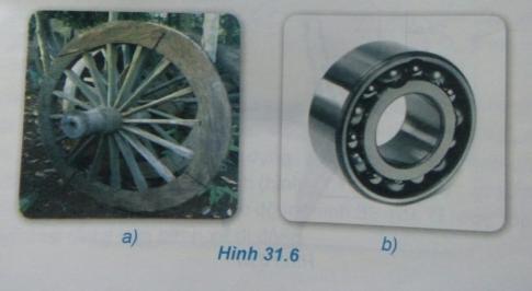 3. Sự khác nhau cơ bản giữa trục bánh xe bò ngày xưa (hình 31.6a) và trục bánh xe đạp, xe máy, ô tô bây giờ là ở chỗ trục bánh xe bò không có ổ bi. Con người đã phải mất hàng chục thế kỷ mới tạo nên sự khác biệt nhau đó. Ổ bi có tác dụng gì (hình 31.6b)? Tại sao việc phát minh ra ổ bi có ý nghĩa quan trọng đối với sự phát triển khoa học công nghệ?