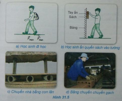 - Chỉ ra loại lực ma sát xuất hiện ở các hình 31.1 và 31.2