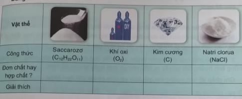| STT | Tên chất | Công thức phân tử | Đơn chất hay hợp chất |