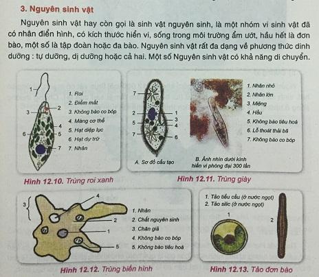 Đọc thông tin và quan sát hình 12.10 đến 12.13 để tìm hiểu về nhóm "Nguyên sinh vật".