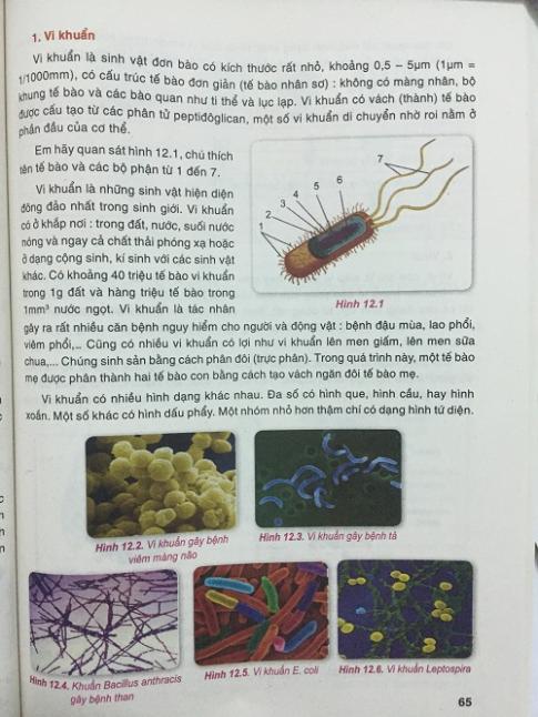 Em hãy quan sát các hình dạng khác nhau của vi khuẩn trong hình 12.2 - 12.6 và cho biết hình thái của các dạng vi khuẩn đó là gì?