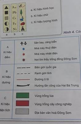 - Kể tên một số đối tượng địa lí, lịch sử được thể hiện trên bản đồ bằng kí hiệu điểm, kí hiệu đường và kí hiệu diện tích