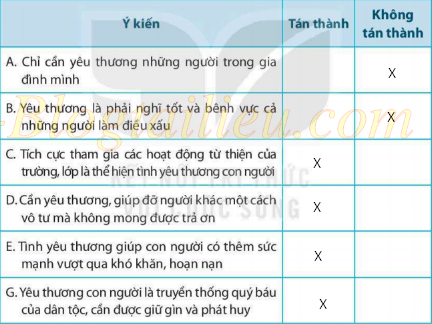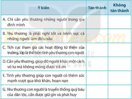 Bài tập 3. Em tán thành hay không tán thành với ý kiến nào dưới đây? (Đánh dấu X vào ô em chọn)