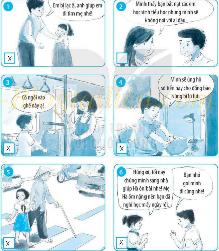 Bài tập 1. Em hãy đánh dấu X vào ô trống ở bức tranh thể hiện tình yêu thương con người.