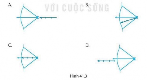 Câu 41.5. Dây cung tác dụng lực F = 150 N lên mũi tên khi bắn cung. Lực F này được biểu diễn bằng mũi tên, với tỉ xích 0,5 cm ứng với 50 N.Trong Hình 41.3, hình nào vẽ đúng lực F?