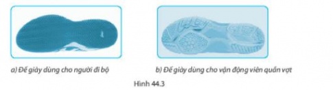Câu 44.5*. Hãy so sánh các khía ở đế giày dùng cho người đi bộ và dùng cho vận động viên quần vợt ở Hình 44.3. Giải thích tại sao?