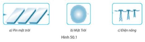 Câu 50.4. Sắp xếp các đối tượng trong Hình 50.1 dưới đây theo đúng thứ tự để thấy được cách sản xuất điện bằng pin mặt trời.