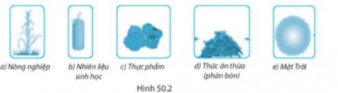 Câu 50.5. Sắp xếp các đối tượng trong Hình 50-2 dưới đây theo đúng thứ tự để thấy được cách sản xuất nhiên liệu từ thực vật.