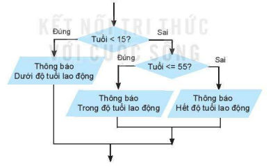 Ngược lại nếu Tuổi <= 55 thì thông báo “Trong độ tuổi lao động".