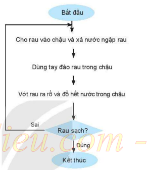 Hình sau mô tả thuật toán thực hiện công việc rửa rau ở bài 16.11 bằng sơ đồ khối.