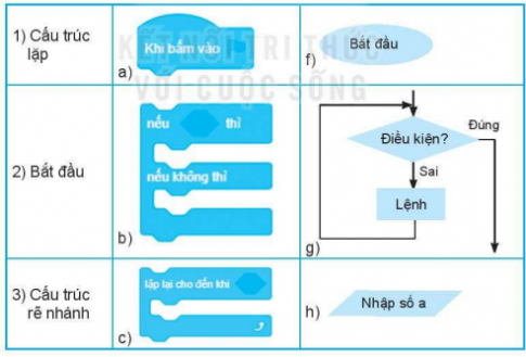 Câu 17.5. Ghép ý nghĩa mỗi câu lệnh với lệnh trong Scratch và kí hiệu hình học của sơ đồ khối cho phù hợp