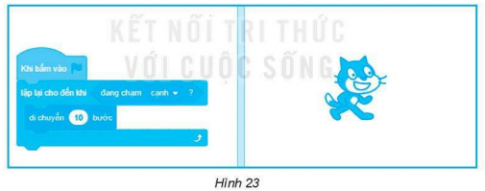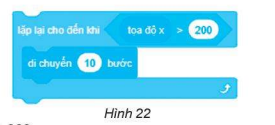 Câu 17.9. Lệnh trong Hình 22 là lệnh lặp thực hiện cho nhân vật, nhân vật sẽ dừng lại khi nào?