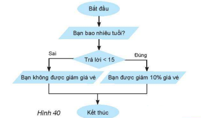 Nếu khách hàng lớn hơn 15 tuổi thì thông báo “Bạn được giảm 10% giá vé", ngược lại thi thông báo “Bạn không được giảm giá vé”.