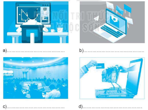 Câu 5.8. Điền một cụm từ cho dưới đây vào hình ảnh tương ứng sau cho đúng. Hội thảo trực tuyến; Kinh doanh qua mạng; Thư điện tử; Học tập qua mạng.