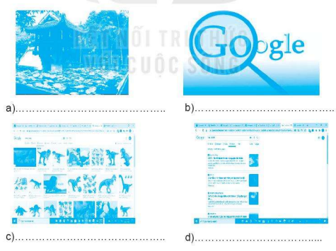 Câu 7.11. Điền một cụm từ cho dưới đây vào hình ảnh tương ứng sau cho đúng. Biểu tượng của một máy tìm kiếm; Danh sách các liên kết dạng hình ảnh; Hình ảnh Chùa Một Cột; Danh sách các liên kết dạng tin tức.