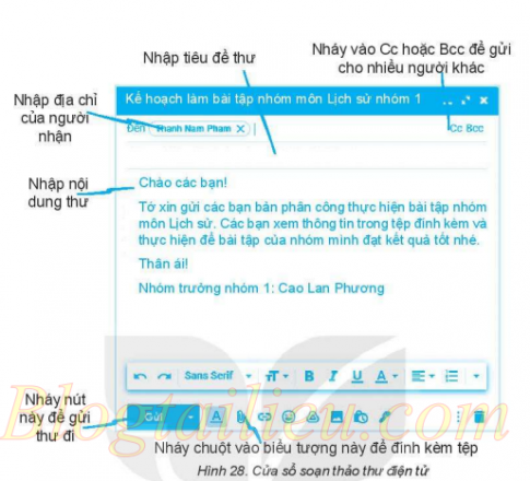 4. Chọn Soạn thư, cửa sổ soạn thư có giao diện tương tự như Hình 28 dưới:
