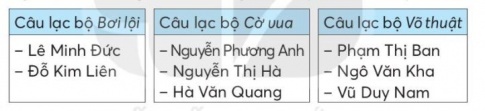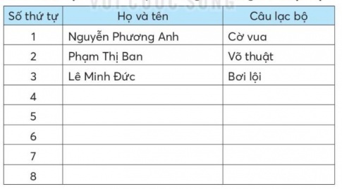 Danh sách học sinh tổ 2 lớp 2C đăng kí tham gia câu lạc bộ