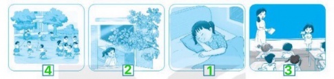 Câu 1. Sắp xếp các tranh sau theo đúng trình tự bài đọc. (đánh số , 2, 3, 4 vào ô trống dưới tranh)