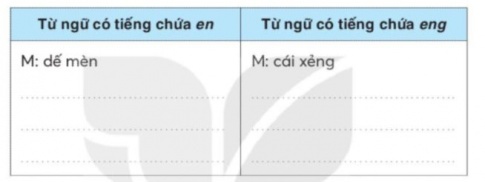| Từ ngữ có tiếng chứa en | Từ ngữ có tiếng chưa eng |
