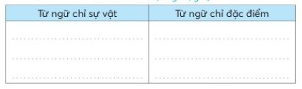 | Từ ngữ chỉ sự vật | Từ ngữ chỉ đặc điểm |