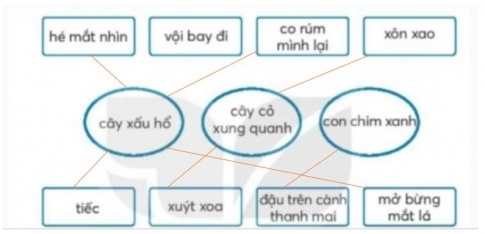 (xanh biếc, lóng lánh, cành thanh mai, câu xấu hổ, đẹp, con chim xanh, cây cỏ, gió)