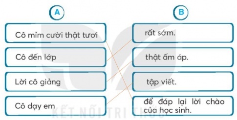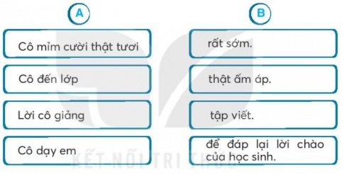 Câu 1. Nối từ ngữ ở cột A với từ ngữ ở cột B để tạo câu nói về cô giáo trong bài đọc.