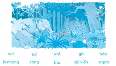 Câu 6. Gạch dưới các từ ngữ gọi tên loài vật xuất hiện trong tranh.