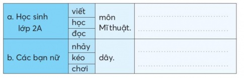 Câu nêu hoạt động: Học sinh lớp 2A học môn Mĩ thuật