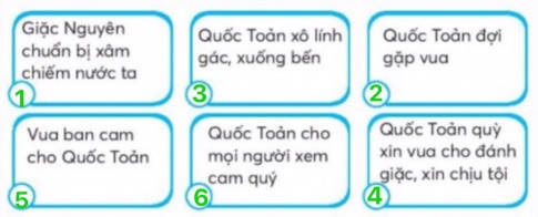 (Trần Quốc Toản, vua, thuyền rồng, quả cam, lính, sứ thần, thanh gươm)
