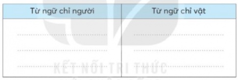 | Từ ngữ chỉ người | Từ ngữ chỉ vật |