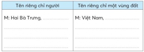 | Tên riêng chỉ người | Tên riêng chỉ một vùng đất |