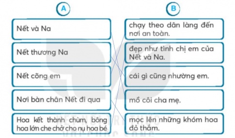 Câu 1. Dựa vào bài đọc, nối từ ngữ cột A với từ ngữ cột B