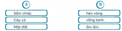 Câu 5. Nối từ ngữ ở cột A với từ ngữ phù hợp ở cột B để tạo câu nêu đặc điểm.