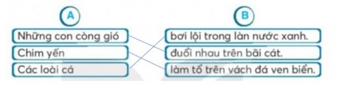 Câu 8. Nối từ ngữ ở cột A với từ ngữ phù hợp ở cột B để tạo câu nêu hoạt động.