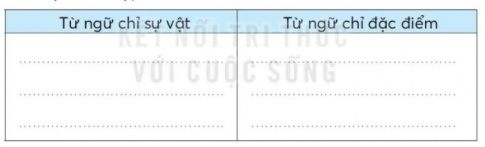 | Từ ngữ chỉ sự vật | Từ ngữ chỉ đặc điểm |