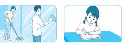 - Bố đang phụ mẹ lau nhà