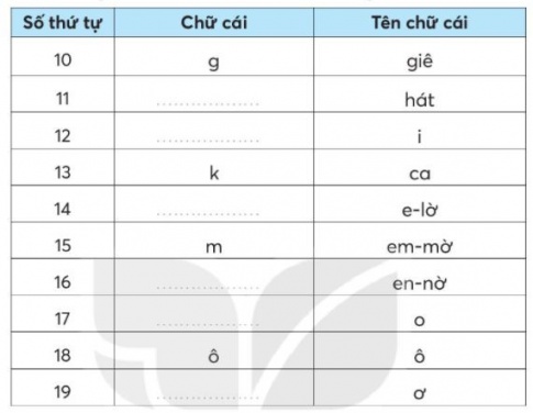 Câu 4. Điền những chữ cái còn thiếu vào chỗ trống