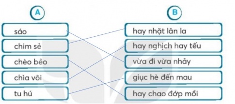 Câu 1. Dựa vào bài đọc, nối từ ngữ ở cột A với từ ngữ phù hợp ở cột B.