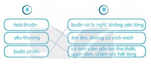 g. Nối từ ngữ ở cột A phù hợp với nghĩa của nó ở cột B.