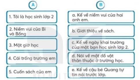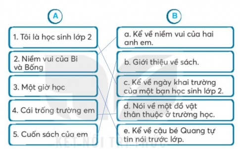 Câu 1. Nối tên bài đọc tương ứng với nội dung của nó.