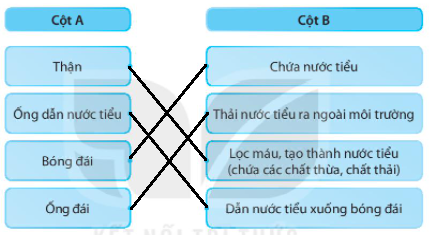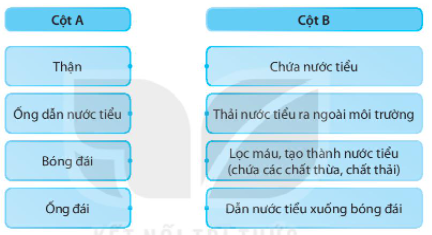 Bài 4. Nối tên mỗi bộ phận của cơ quan bài tiết nước tiểu cơ cột A với một chức năng phù hợp ở cột B.