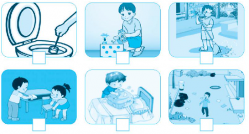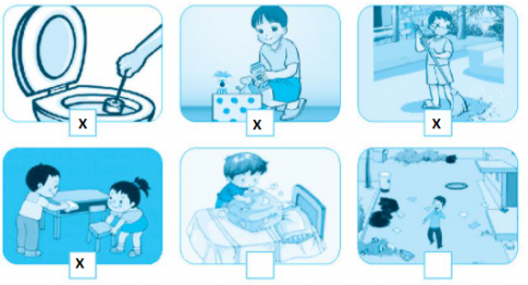 Bài 2. Em hãy đánh dấu X vào ô trống dưới mỗi hình thể hiện việc làm phù hợp để giữ gìn nhà ở sạch sẽ.