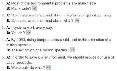 2. Listen and mark / (rising intonation) on the echo questions. Then practise read the exchanges. (Hãy nghe và đánh dấu mũi tên lên thể hiện ngữ điệu lên của những câu hỏi lặp lại. Tập đọc các mẩu hội thoại dưới đây.)